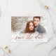 This elegant save the date features shimmering script in faux rose gold foil with a striped backer. Upload your own photo and customise the information to include your wedding details.