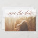 This elegant save the date features shimmering script in faux rose gold foil with a striped backer. Upload your own photo and customise the information to include your wedding details.