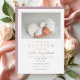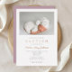 Rose Gold Script Purple Photo Girl Baptism Foil Invitation.