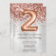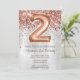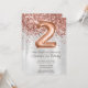 Rose Gold Silver 2nd Birthday Party Invitation and rose gold elegant modern 2nd birthday party invitation for a 2 year old girl with modern script writing and fun foil balloons.