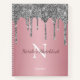 Enjoy this elegant sketch book design featuring your text and monogram or initial with chic and sparkly silver glitter drips over a rose gold pink foil background.