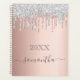 A faux rose gold metallic looking background with elegant rose gold and faux silver glitter drips, paint dripping look. Template for a year. Personalise and add a name. The name is written in grey with a large modern hand lettered style script with swashes. Perfect for school, work or organising your personal/family life. To keep the swashes only delete the sample name, leave the spaces or emoji's in front and after the name