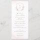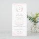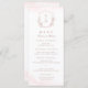 Monogrammed initials framed by elegant crest and hand illustrated botanical leaves, menu details in elegant script and classic font, simple and luxury. Great faux rose gold and blush pink menu for modern classic wedding, simple formal wedding, elegant botanical garden wedding.