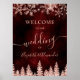 Welcome guests to your winter wedding with this elegant sign featuring faux rose gold glitter shimmering snowflakes and a forest of frosted pine trees. Set against a deep red burgundy background, the design exudes a magical winter wonderland ambiance. Perfect for a Christmas or winter wedding, this sign sets the tone for a festive and romantic celebration.