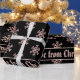 Elegant Rose Gold Christmas Snowflakes Pattern with custom text Merry Christmas Elizabeth With Love from Christopher on Black Background, you can change or delete all text, Christmas Gift Wrapping Paper, choose matte or glossy