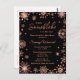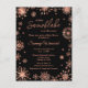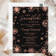 This elegant and glamourous invitation postcard features watercolor rose gold faux glitter snowflakes and sparkles on a black background. It is perfect for a winter or Christmas themed baby shower.