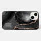 This pretty phone case features a dramatic abstract design in black and rose gold faux glitter. Tiny star confetti gives a glittery effect, with your monogram in pale gray against darker gray and black at the bottom. Classy!