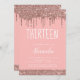 Rose Gold Sparkle Glitter 13th Thirteen Birthday Invitation