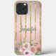 Rose Gold Sparkle Gold Stripe With Flowers iPhone 13 Pro Max Case. The personalised name can be in any colour you choose. I have set up the template for you to customise. No need to be tech savvy. Easy!