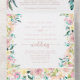 This rose gold spring floral wedding all in one invitation is perfect for a rustic wedding. The design features a wealth of colourful peonies and green foliage, neatly bunched into charming bouquets, inspiring natural beauty.