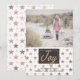 Chic flat style holiday greeting card, with your custom photo, on the top half of the card and pretty rose gold stars decorating the bottom half. Graphics of a charcoal grey text area, on the bottom of the card has rose gold looking graphic text reading Joy. Personalise the dark grey text, on the bottom front, to suit your holiday card giving needs. Customise to add additional text, on the star covered back side. Sample photograph courtesy of Lorri Lang.