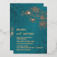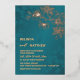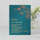 This elegant wedding invitation features rose gold line art floral cherry blossoms on a shimmering teal / turquoise background. Your photo on the backside.