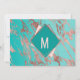 Elegant, chic, and modern with a retro vibe, faux printed rose gold geometric diamond shape outline on teal green and faux rose gold marble with mauve, and blush pink diamond cutouts, Save-the-Date wedding card. This classic and sophisticated design is perfect for the trendy and stylish marrying couple. Personalise with your own message on the front as well as a customised monogram initial on the back. All photo print design.