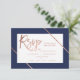 Rose gold typography stripe navy blue rsvp wedding card