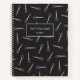 Chic and elegant recipe book for home cooks, bakers, caterers and chefs features a pattern of faux rose gold foil kitchen whisks on a rich charcoal grey background. Create a cool unique gift for the cooking lover or chef in your life by personalising this recipe book with two lines of custom text in classic white lettering.
