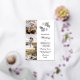 Photo wedding invitation in white and rose gold personalised with three photos and your initials framed by little white flowers on one side, and another photo on the back. Informal rose gold foil wedding invitation in white with a floral monogram with white flowers and greenery.