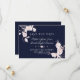 Elegant Rose Gold White Flowers Frame card design. It features elegant faux rose gold white flowers frame, rose gold floral divider, all on a dark blue background. Use Personalise tool to add your info, change background colour. For matching items, please, visit my Rose Gold White Flowers Collection.