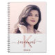 A chic white background. Personalise and add your own photo, a name, monogram letter and a year. The name is written in burgundy with a large modern hand lettered style script with swashes. The monogram letter in rose gold. Perfect for school, work, taking notes, as a diary and journalling. To keep the swashes only delete the sample name, leave the spaces or emoji's in front and after the name