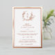 Classic & elegant real rose gold foil wildflower crest and monogram wedding invitation with thick border sophisticated design.