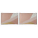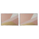 A modern abstract composition featuring intersecting geometric shapes in soft blush pinks, creamy white, and a bold metallic gold. The textured surface adds depth and a tactile element to the minimalist design, evoking a serene and sophisticated atmosphere. Perfect for contemporary interiors or as a digital background.