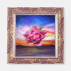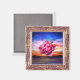 Pink rose in oil painting sky in elegant vintage frame.A precious gift for magnets collectors