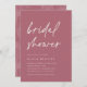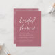 Invite guests to celebrate the bride to be with these modern and minimal bridal shower invitations. Simple design features "bridal shower" in casual handwritten script on a deep rose pink background, with your event details aligned at the lower left in modern off white lettering. A subtle tonal palm leaf pattern on the back completes the design.