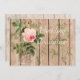 A pretty rose of Orleans in a rose decorated mason jar against a detailed grey wood panel.