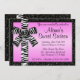 Rose Pink Glitter Invite With Zebra Print Bow