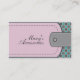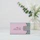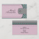 Pale rose pink leather look and pattern grey, teal modern accessories business card template featuring one pale rose pink band with seams and one grey with a button in leather style-not real leather just a PRINTED image and a geometric pattern in grey and teal. This modern yet with a retro flair business card template is fully customisable.