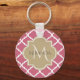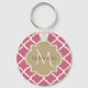 Rose Pink Quatrefoil Pattern With Big Tan Monogram Key Ring