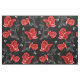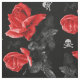 This decorative design has a stylised rose from vintage illustrations, and little skulls. Red and black floral pattern.