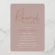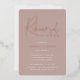 Invite guests to celebrate the happy couple with these modern and minimal rehearsal dinner invitations with luxe foil accents. Simple design features "rehearsal dinner" in casual rose gold foil handwritten script, with your event details beneath on a dusty blush background.