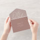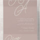 A beautiful typography based monogram wedding invitation featuring your initials in oversized script lettering at the top, in tone on tone shades for a watermark effect. Personalise with your wedding details in classic serif lettering aligned at the lower right. Our Rose Taupe colorway is an elegant mix of earthy neutral pinks, featuring warm white and classic white lettering on a rosy taupe background. Attached RSVP card and folding style makes this all-in-one invitation an appealing choice.