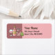 Rose wine composition. Bottle, glass, corkscrew and grapes. Custom background colour. Custom text for name and address.