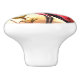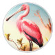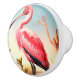 Ceramic door pull/knob with image of a Roseate Spoonbill bird in colours of pink and blue.