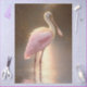 Roseate Spoonbill standing in water with warm light shining down on the pink bird.