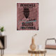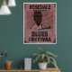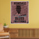 Fictional concert style poster featuring an African American caricature style fictional character from Mississippi touting a Riverside Blues Festival.