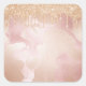 Rosegold Blush Marble with Gold Glitter Droplets Square Sticker