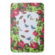 A stunning red rose beautiful blue sapphire hummingbirds adorn this fabulous designer shower curtain