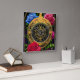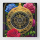 Beautiful roses in red blue and pink surrrounding a gold filigree clockface