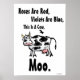 Roses Are Red, Violets Are Blue, This Is A Cow, Moo. This funny poster is the perfect decoration... It includes the poem above plus a fun cartoon illustration of a black and white cow. Fun, weird, and just the thing for those with a bit of a odd sense of humor and a love for bad poetry. Customize it! You can change the wording or change the background color. Do what you like and make it yours!