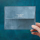 A bright, bold floral of roses in shades of dusty blue and peach is the focal point for many of the pieces of this wedding suite that also features elegant script text and modern design layouts. The matching wedding envelope shown here has an upper border of roses on the interior and a beautiful watercolor abstract on the exterior in rich burgundy and plum. Easily enter your names and address using the provided template. Search ID584 to see all the matching pieces in this beautiful wedding set.