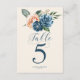 Roses Blue/Peach Wedding Table Numbers ID584