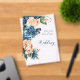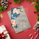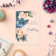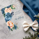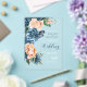 A bright, bold floral of roses in shades of dusty blue and peach is the focal point for many of the pieces of this wedding suite that also features elegant script text and modern design layouts. The transparent acrylic wedding invitation shown here has a lush side border of roses. Easily enter your wedding details using the provided template. Search ID584 to see all the matching pieces in this beautiful wedding set.