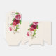 A bright, bold floral of roses in shades of burgundy and cream is the focal point for many of the pieces of this wedding suite that also features elegant script text and modern design layouts. The wedding favour box shown here has a side border of roses beautiful 'Love and Thanks' script. Easily enter your wedding names and date using the provided template. Search ID584 to see all the matching pieces in this beautiful wedding set.