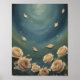 Roses & Floating Petals Teal Blue Oil Painting Poster