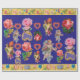 ROSES,FLOWERS,FEATHERS,ANGELS AND HEARTS IN BLUE WRAPPING PAPER