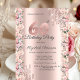 A modern, chic, and glamourous with rose gold glitter drips, and roses frame on a rose gold background.