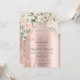 A modern, chic and glamourous invitation with roses, glitter drips on a rose gold background.
