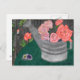 Roses in a watering can post card featuring the the coloured pencil drawing by Julia Hanna.